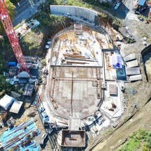 Aktuální pohled na stavbu z ptačí perspektivy