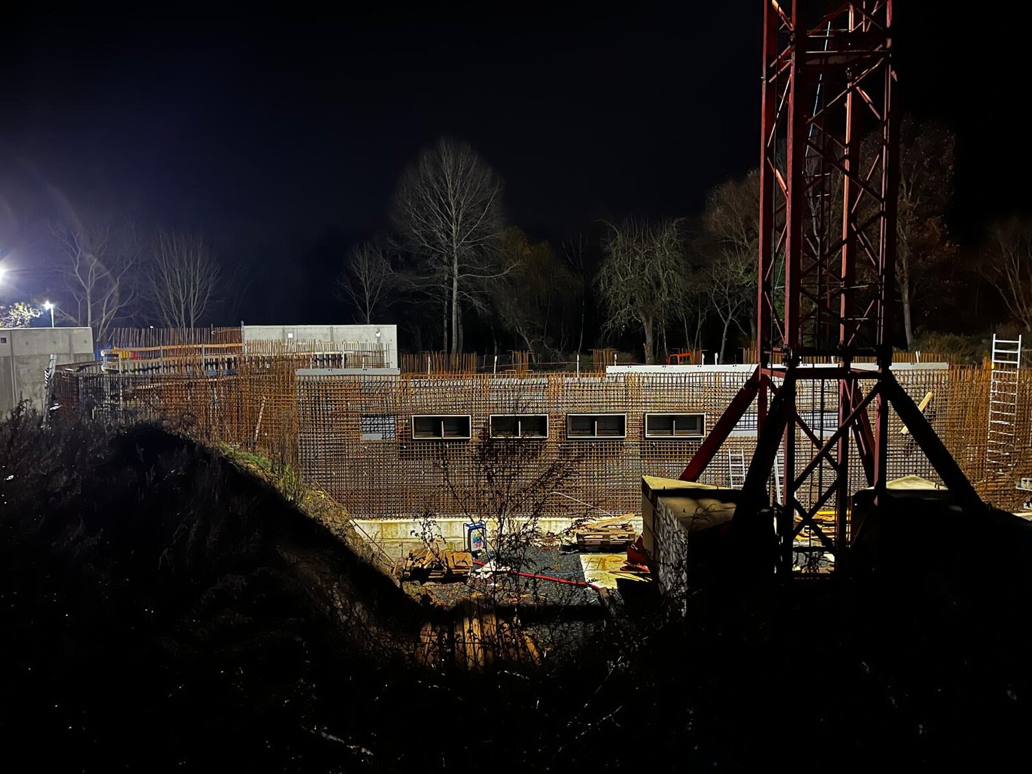 A zde ještě (netradičně noční) pohled na aktuální (20. 11. 2025) stav na staveništi